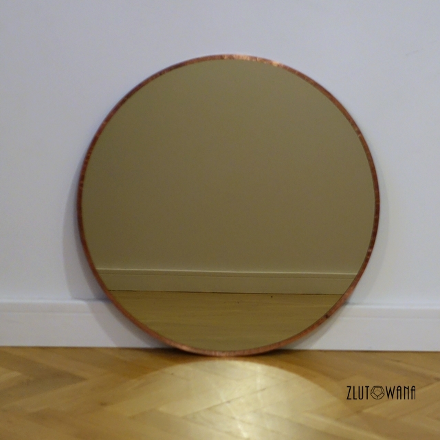 Lustro brązowe ręcznie lutowane okrągłe w miedzianej patynie