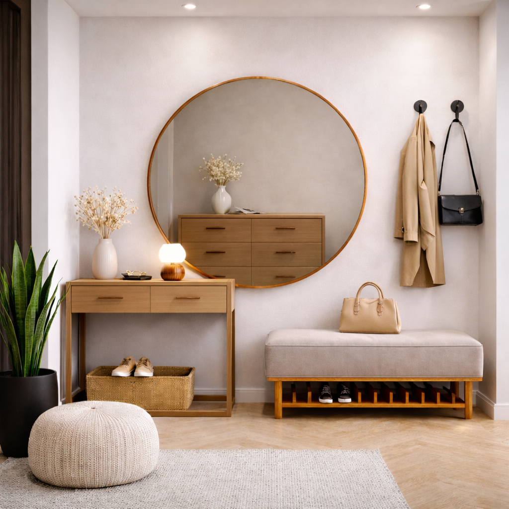 Ręcznie lutowane lustro brązowe w miedzianej patynie w kształcie koła, do salonu, przedpokoju lub sypialni.