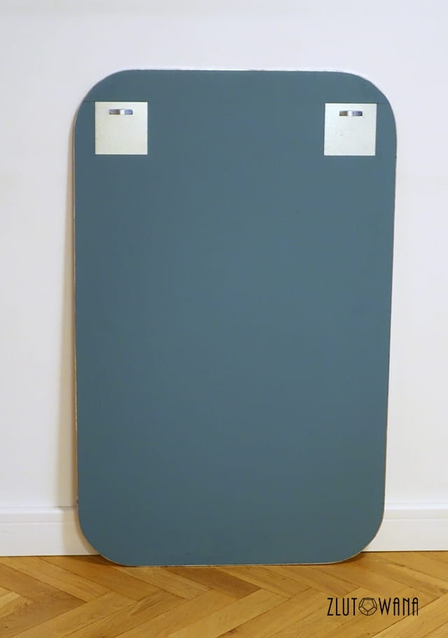 Lustro ma zamocowane 2 wieszaki do powieszenia w pionie.