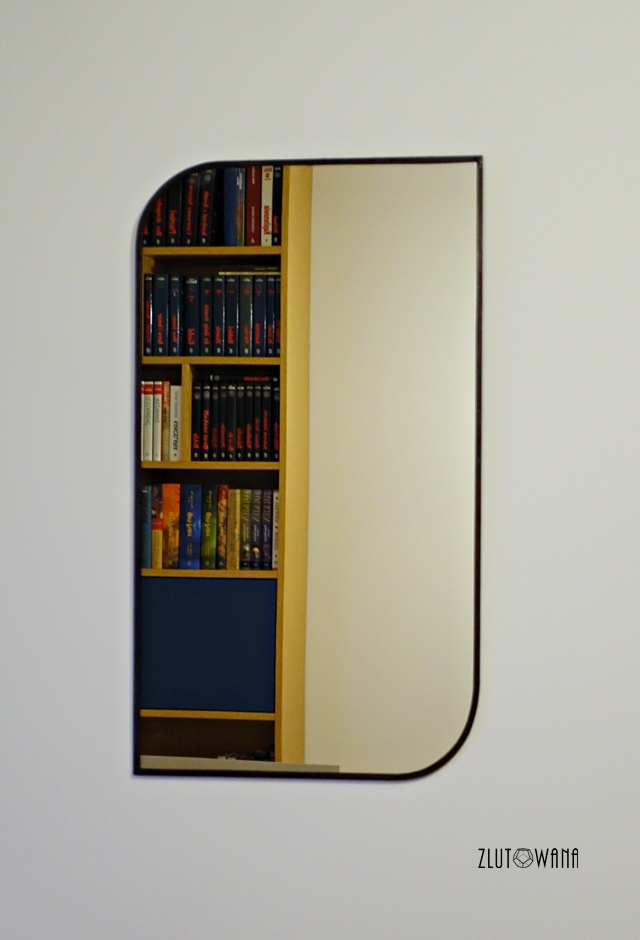 Lustro ma zamocowane 2 wieszaki do powieszenia w pionie